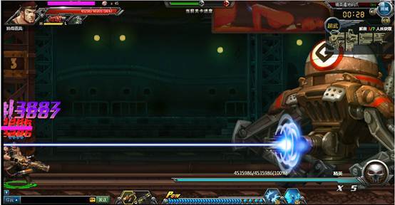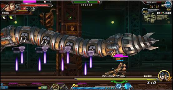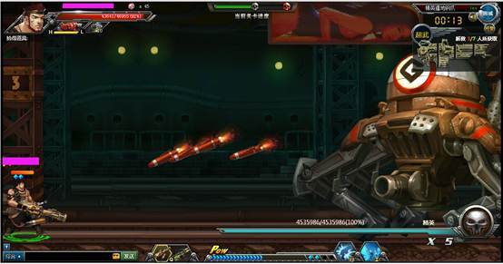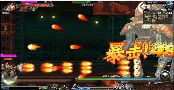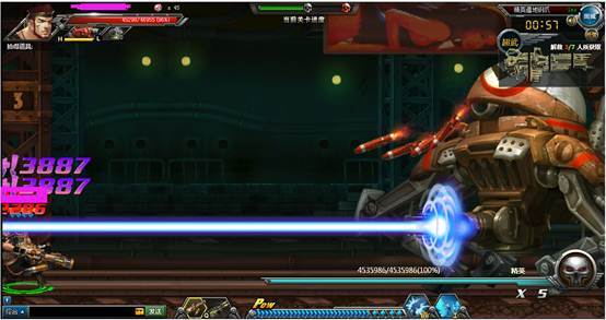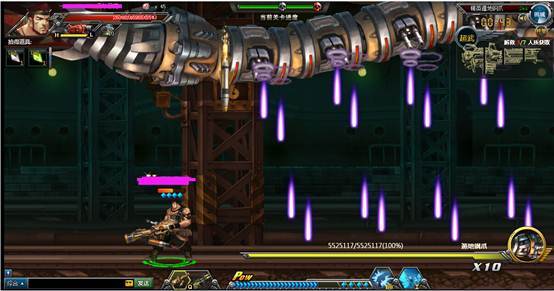 下面boss会发出散射机枪弹,是可以打掉的,建议可以开爆气值打,这个可以威力更猛点,以免普通的攻击很难打掉。