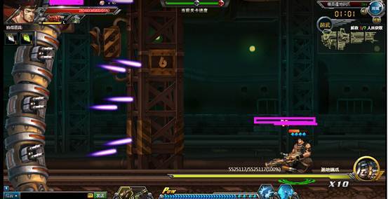 然后boss会从右边横着出来,等快到中间位置的时候,会发出一排排带有间隔性的激光的,boss会一直在移动,人也要跟着boss移动的,,当移动到最左边的时候,可能没办法躲了,需要队伍之中一个人放出必杀,然后人再往右边走。