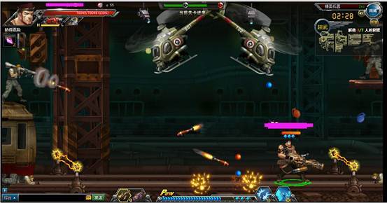 聚光炮打掉了,下面又是小怪的时间了。过来之后先将天上的2个探头打掉,以免发出激光穿过自己,地上爬行的小兵,用手雷炸掉,然后过一会就出来很多小鸟直升机了。还有大量小兵,这里我会直接放一个必杀的。效率快,也以免直升机伤到自己。