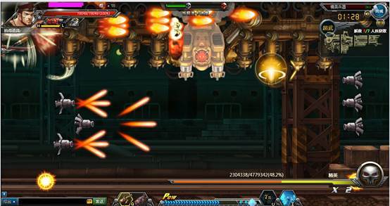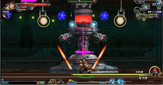 进来后,人物就直接站在图中中间位置,朝着boss打,等激光和boss发的光球快下来的时候,人往上跳可以躲过,然后继续打,后面发出回旋激光也是打不到人的,两边出来的坦克,在打boss的时候顺便往两边打下,地上的子弹跳起来躲下就可以了。很快就可以打掉了。boss都死了,小兵当然也会死了,整个通关就结束了。